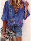 Dames Overhemd Knoop omhoog Blouse Imitatie katoenlinnen Knop Afdrukken Bloemig Geometrisch Basic Casual Lange mouw Overhemdkraag Normale tops Dagelijks Leger Groen Rood Khaki Grijs Zomer Lente Herfst