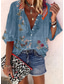 Dames Overhemd Button-down overhemd Normaal shirt Zomer tops Knop Afdrukken Bloemig Grafisch Vintage Stijlvol Modern Korte mouw Overhemdkraag Lange tops Dagelijks Wit en Blauw Regenboog Rood / blauw
