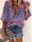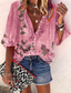 Dames Shirt Button Down Blouse Ombre Bloem Motief Grafisch Bohemia Vintage Dagelijkse 3/4 Lengte Mouw V-hals Reguliere Tops Dagelijks Vakantie Strandkleding Print Paars Groen Rozenroze Zomer Lente