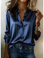dames overhemd blouse casual gestreepte knopen print lange mouw normale tops v-hals vakantie dagelijks blauw lente&zomer