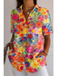 Dames Blouse Afdrukken Bloemig Grafisch Stijlvol Strandstijl Korte mouw V-hals Normale tops Dagelijks Regenboog Zomer Lente