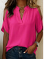 Dames Overhemd Blouse Chiffon-topjes Effen Kleur Effen Elegant Vakantie Korte mouw V-hals Lange tops Casual Wit patron Zwart + kaki Blozend Roze Rood Marineblauw Zomer