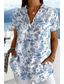 Dames Overhemd Button-down overhemd Normaal shirt Zomer tops Knop Afdrukken Bloemig Grafisch Vintage Stijlvol Modern Mouwloos Korte mouw Overhemdkraag Normale tops Dagelijks Groen En Blauw Blozend