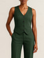 Heren Bruiloft Strand bruiloft Linnen pakken V-hals erwt groen Wit Zomer Lente Effen Getailleerd 2-delige set