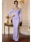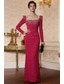 Sheath Column Vloer Lengte Avondjurk Elegant Lange Mouw Vierkante Hals Avond Feest Bruiloft met Kristallen Parelmoer