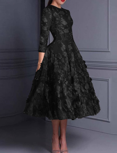 A-lijn Over de knie Cocktailjurken Elegant Bloemig Korte mouw Strakke ronde hals Tuinfeest Bruiloft Kant met 3D-bloemen Borduurwerk Appliqués
