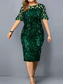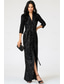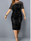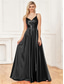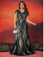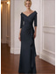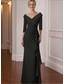 Black Tie Pailletten Sheath Kolom Avondjurk Elegante Jurk Formele Bruiloft Vloer Lengte 3/4 Mouw V-hals Met Glitterbandjes
