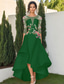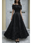 A-lijn Tot de enkel Cocktailjurken Feestjurken Elegant Vintage Halve mouw Strakke ronde hals Bruiloft Formeel Zak Satijn Blote Rug met Appliqués