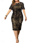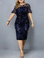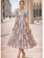 Jurkje Moeder van de Bruid Jurk Elegant Crew Hals Thee Lengte Kanten Korte Mouw met Pailletten