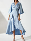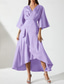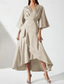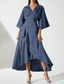 Strak kolom Asymmetrisch Tot de grond Cocktailjurken Feestjurken Elegant Vintage Lange mouw Overhemdkraag Formeel Bruiloft gast Satijn met Geplooid