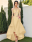 A-lijn Over de knie Cocktailjurken Feestjurken Elegant Hoog laag Mouwloos V-hals Bruiloft gast Kentucky Derby Zak Satijn met Strik(ken)