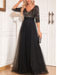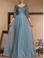 A-lijn avondjurk elegante jurk formele bruiloft vloer lengte 3/4 lengte mouw V-hals geborduurd met sequin