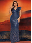 Zeemeermin Trompet Plus Size Jurken Elegante Curvy Jurk Formele Bruiloft Vloerlengte Mouwloos V-hals Met Pailletten
