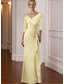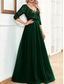 A-Lijn Cocktail Elegante Bruiloft Gast Jurk Formele Vloer Lengte 3/4 Lengte Mouw V Hals Chiffon met Gerimpelde Ruffles