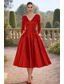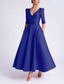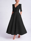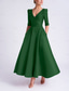 A-lijn Tot de enkel Cocktailjurken Elegant Vintage 3/4 mouw V-hals Formeel Zak Satijn met Strik(ken) Ruches