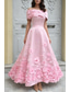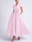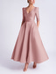 A-lijn Tot de enkel Cocktailjurken Elegant Vintage Bloemig Korte mouw Koningin Anne Bruiloft Formeel Roze jurk Satijn Kant met Geborduurde bloem Borduurwerk Zak