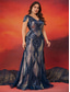 Zeemeermin Trompet Quinceanera Jurken Elegante Jurk Formele Bruiloft Vloerlange Korte Mouwen V-hals met Pailletten