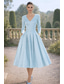 A-lijn Over de knie Cocktailjurken Feestjurken Elegant Halve mouw V-hals Formeel Bruiloft gast Satijn met Zak