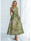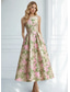 A-Lijn Jurk Jacquard Jurk Semi-Formeel Cocktail Jurk Bruiloft Midi Lengte Mouwloos Halternek Strik Rugloos met Vetersluiting Detail Bruiloft Gast Jurk