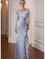 Strak kolom Over de knie Cocktailjurken Elegant Mouwloos Schouderafhangend Tuinfeest Bruiloft Stretchsatijn met Ruches