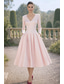 A-lijn Tot de enkel Cocktailjurken Elegant Vintage Bloemig Halve mouw V-hals Bruiloft Formeel Roze jurk Satijn Kant met Borduurwerk Zak