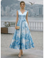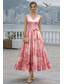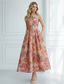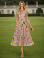 A-lijn Over de knie Cocktailjurken Jurken voor bruiloftsgasten Elegant Mouwloos V-hals Tuinfeest Formeel Satijn met Bloemenprint Plooien Ruches