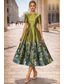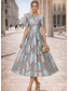 A-lijn Over de knie Cocktailjurken Elegant Vintage Bloemig Korte mouw Strakke ronde hals Tuinfeest Bruiloft Zak Jacquard met Bloemenprint Borduurwerk