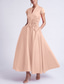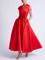 A-lijn Tot de enkel Over de knie Cocktailjurken Elegant Mouwloos Eén-schouder Tuinfeest Bruiloft Stretchsatijn met Strik(ken) Ruches