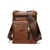 Bruine leren schoudertas voor heren met meerdere compartimenten en verstelbare riem, ideaal voor op reis en dagelijks gebruik