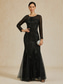Dames Maxi-jurk Trompet- zeemeerminjurk Elegant Feest Formeel Cocktailparty Pailletten Geborduurd Netstof Normale pasvorm Effen Kleur Lange mouw Strakke ronde hals Bordeaux