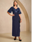 Dames Maxi-jurk Empire taille jurken Elegant Flutter mouw Avond Feest Pailletten Kant Netstof Normale pasvorm Bloemig Halve mouw V-hals Marineblauw