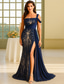Dames Maxi-jurk Schede jurk Trompet- zeemeerminjurk Elegant cocktail Semi-formele jurken Avond Feest Feest Pailletten Kristal Effen Kleur Mouwloos V-hals Marineblauw