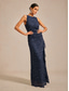 Dames Maxi-jurk Schede jurk Elegant Avond Feest Bruiloft gast Pailletten Ruche Schitteren Normale pasvorm Effen Kleur Mouwloos Strakke ronde hals Marineblauw