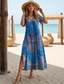 dames casual jurk swing jurk bloemenprint halter hals lange jurk maxi jurk stijlvol casual dagelijks date mouwloos zomer