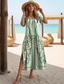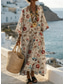 Dames Maxi-jurk Hemdjurk Casual Strand Uitgaan Ruim Passend Bloemig Grafisch Lange mouw V-hals Licht Roze Lichtgroen Beige Zomer Lente