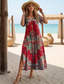 Dames Maxi-jurk Boho-jurk met lange mouwen Boho-jurk Jurk met print Bohemen Modieus Streetwear Uitlopende mouw Straat Feestdagen Uitgaan Ruim Passend Grafisch V-hals Rood blauw Paars Oranje Zomer