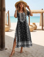 Dames Midi Jurk Lijnachtig Zomerjurk Shift Jurk A-lijn Jurk Vakantie Casual Boho Strand Feest Uitgaan Losse Pasvorm Bloemen Graphic Mouwloos Ronde Hals Blauw Lichtblauw Oranje Groen Zomer Lente