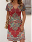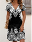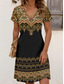 Dames Mini-jurk T shirt jurk Zonnejurk Vakantie Casual Boho Uitgaan Normale pasvorm Grafisch Paisley Korte mouw V-hals Zwart goud As Zwart Rood Zomer Lente