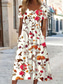 Maxi-jurk voor vrouwen A-lijn jurk Zomerjurk Elegant Vakantie Vakantie Dagelijks Regular Fit Bloemen Grafisch Korte Mouw V-hals Wit Zomer Lente Herfst
