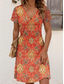 Dames Midi Jurk Shift Jurk Bloem Pocket Print V-Hals Date Vakantie Korte Mouw Zomer Lente