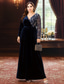 A-Lijn Vloerlange Bruiloft Gastjurk Formele Jurken Avondjurk Moeder van de Bruid Jurk Lange Mouwen V-hals Elegante Vintage Feest met Kleurblok
