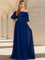 A-Lijn Vloerlange Bruidsgastjurk Formele Jurken Avondjurk Moeder van de Bruid Jurk Korte Mouwen Off Shoulder Elegant Vintage Feest met Plooien