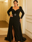 A-lijn Vloerlengte Bruiloft Gast Jurk Formele Jurken Avondjurk Moeder van de Bruid Jurk Lange Mouw V Hals Elegant Vintage Feest Spandex met Plissé Split Voor