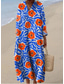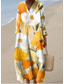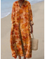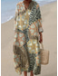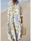 Dames Maxi-jurk Hemdjurk Vakantie Casual Uitgaan Ruim Passend Bloemig Grafisch Lange mouw V-hals blauw Geel Oranje Licht Blauw-Wit Zomer Lente