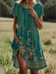 Dames Mini-jurk Bloemetjesjurk Boho-jurk Jurk met print Klassiek Modern Dagelijks Buiten Vakantie Normale pasvorm Bloem Korte mouw Strakke ronde hals blauw Wijn Groen Zomer