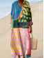 Dames Midi Jurk V-hals Lange Mouwen Kaftan Lichtgewicht Lose Fit A-lijn Jurk Casual Boho Feest Uitgaan Grafisch Geometrisch Streep Lange Mouwen As Geel Roze Oranje