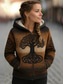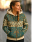 Viking boho dames winterjas warm lichtgewicht rits print fleece gevoerd elegant vintage mode geometrisch thuiswerk casual rits normaal capuchon losse pasvorm lange mouw bovenkleding