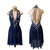 Zwarte Latijns-Amerikaanse dansjurk voor dames met kralen V-hals, verenzoom en kristal strass-details voor salsa, tango en performance-kleding