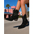 Zwarte enkellaarsjes van imitatieleer voor dames met studs, gespband en western stiksels, trendy schoenen voor in de stedelijke mode