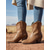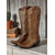 Bruine geborduurde cowboylaarzen voor dames – klassieke western-stijl halfhoge laarzen voor herfstfestivals, boerderijwerk en countryconcerten